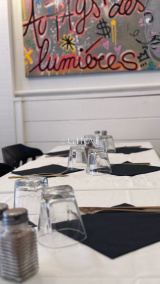 •D’une capacité d’accueil de 16 couverts en terrasse ensoleillée et 19 couverts à l’intérieur dans une ambiance chaleureuse.