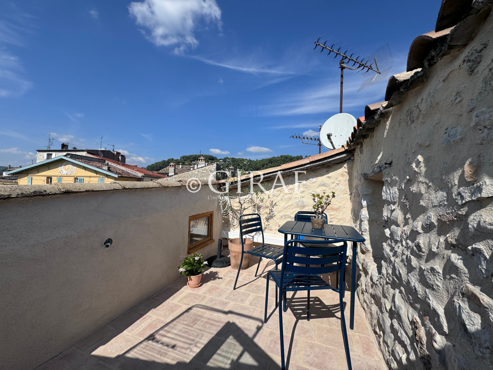 Pour parfaire le charme, une terrasse tropézienne, qui permet de profiter d’une vue dominante sur les toits du village, idéale pour des moments de détente en plein air. Son emplacement privilégié et son authenticité en font un bien rare sur le marché.