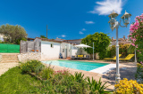 La piscine d'un beau volume dispose d'un petit pool house pour plus de confort.
