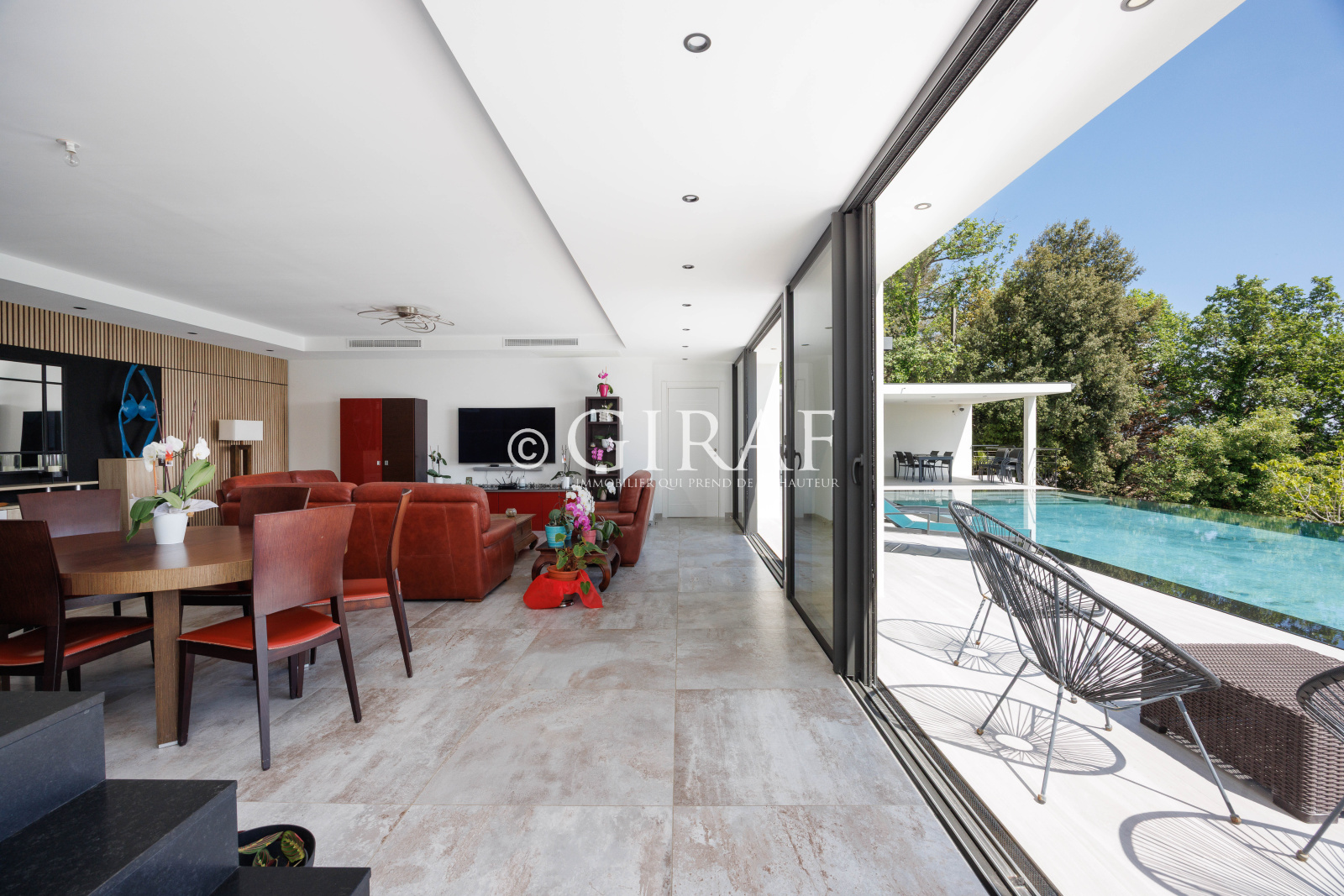 Villa contemporaine d’exception offrant une exposition Sud-Ouest idéale, baignée de lumière grâce à de grandes baies vitrées. Elle dispose de belles terrasses prolongées par une piscine à débordement, parfait pour profiter du soleil. À l’intérieur, vous découvrirez quatre chambres, dont une somptueuse suite parentale avec prestations haut de gamme. Le tout est implanté sur un terrain arboré soigneusement entretenu, avec un garage et de nombreuses places de stationnement. Une propriété où confort, modernité et cadre de vie s’harmonisent parfaitement.
