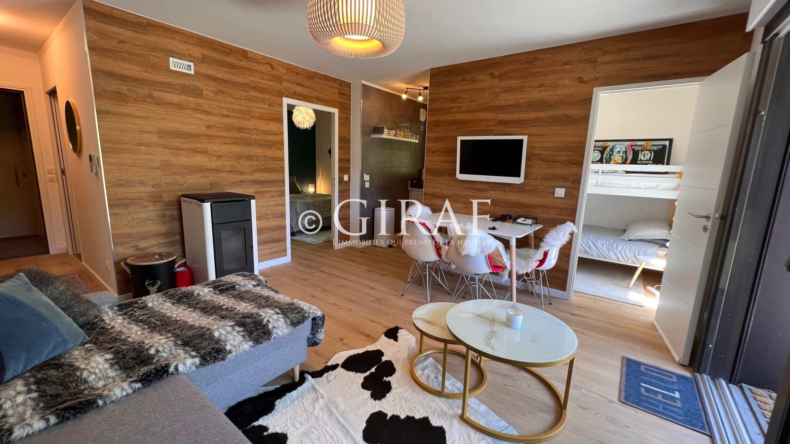 En Exclusivité, Situé dans un immeruble neuf et élégant de la prestigieuse Station de Ski d'Auron idéale été comme hiver,, appartement T2 (+ cabine de couchage) en rez de chaussé et en angle bénéficiant d'une spacieuse terrasse très bien exposée...La qualité et la noblesse des matériaux, ainsi que l'agencement intérieur font de ce bien un lieu rare...Store électrique, poêle à bois, parquet au sol, grandes baies vitrées...Parkings, garage fermé et situation d'exception...