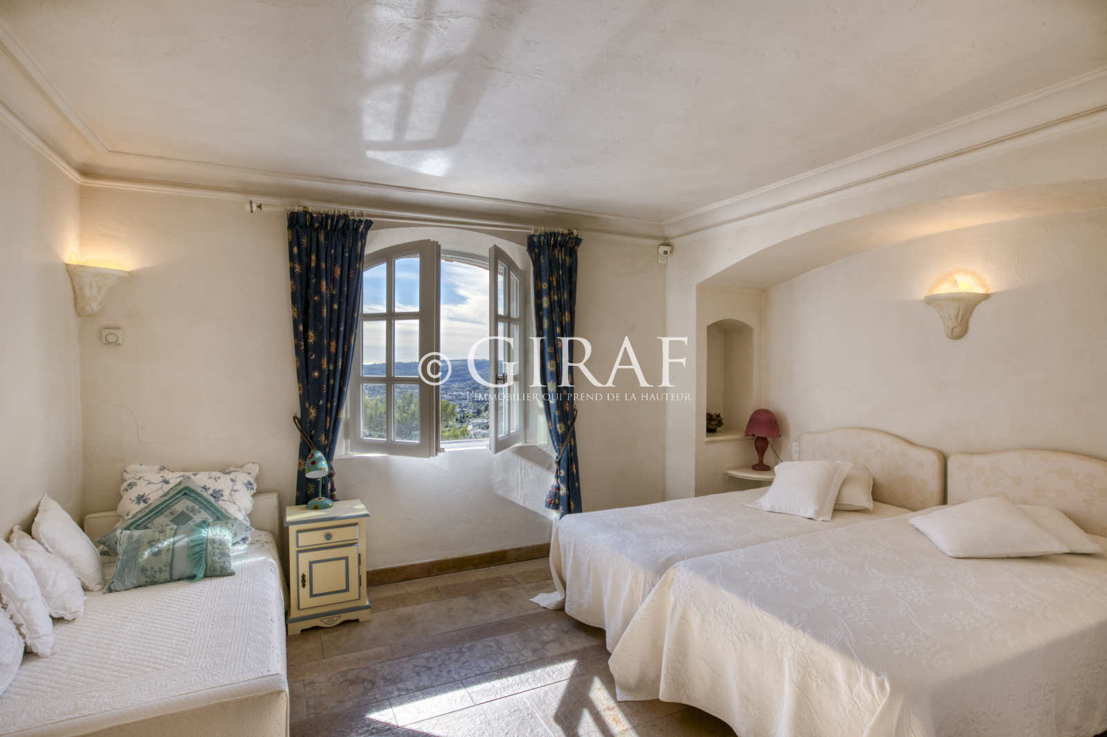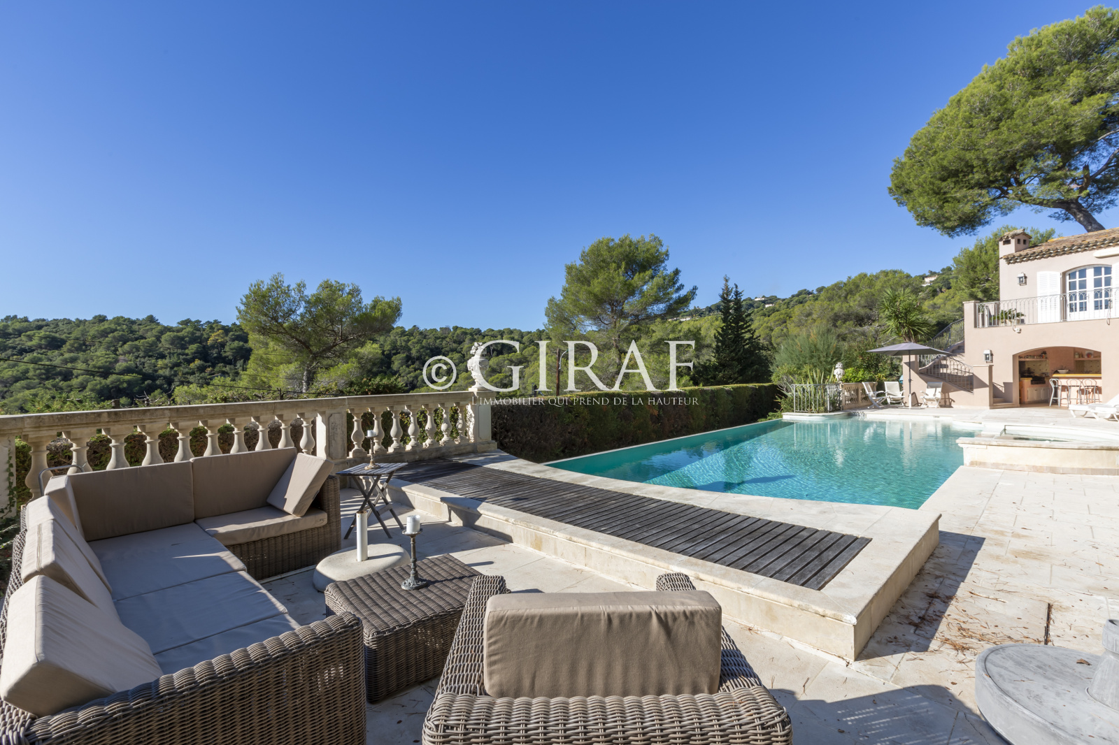 Qualité de construction et volumes généreux pour ce bien idéalement situé dans un quartier résidentiel de Saint Paul de Vence offrant une vue mer et sur la cap d'Antibes (Sud) à proximité du village et de ses commodités.... Au rez de chaussée supérieur salon-cheminée se prolongeant sur de vastes terrasses, à l'etage des chambres type master dont une bénéficiant d'une terrasse "tropézienne", plus un salon loisir détente au rez de chaussée inférieur, une salle fitness acec douche (possibilité de chambre suplémentaire) au niveau de la piscine, jacuzzi, avec cuisine d'été complète...Garage deux voitures et nombreux parking intérieurs...Le tout au calme absolu